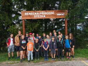 Den 1 – 9.8.2025 Už tradičně jsme se sešli v sobotu ráno v hasičárně a vyrazili hromadně autobusem do Krkonoš, na Benecko, do našeho „domácího“ penzionu Alex . První den