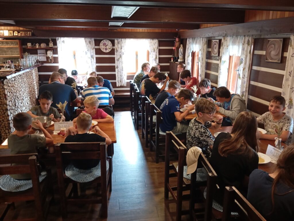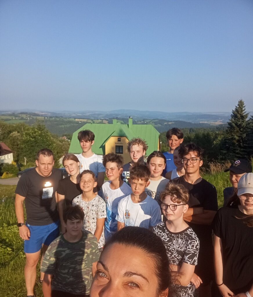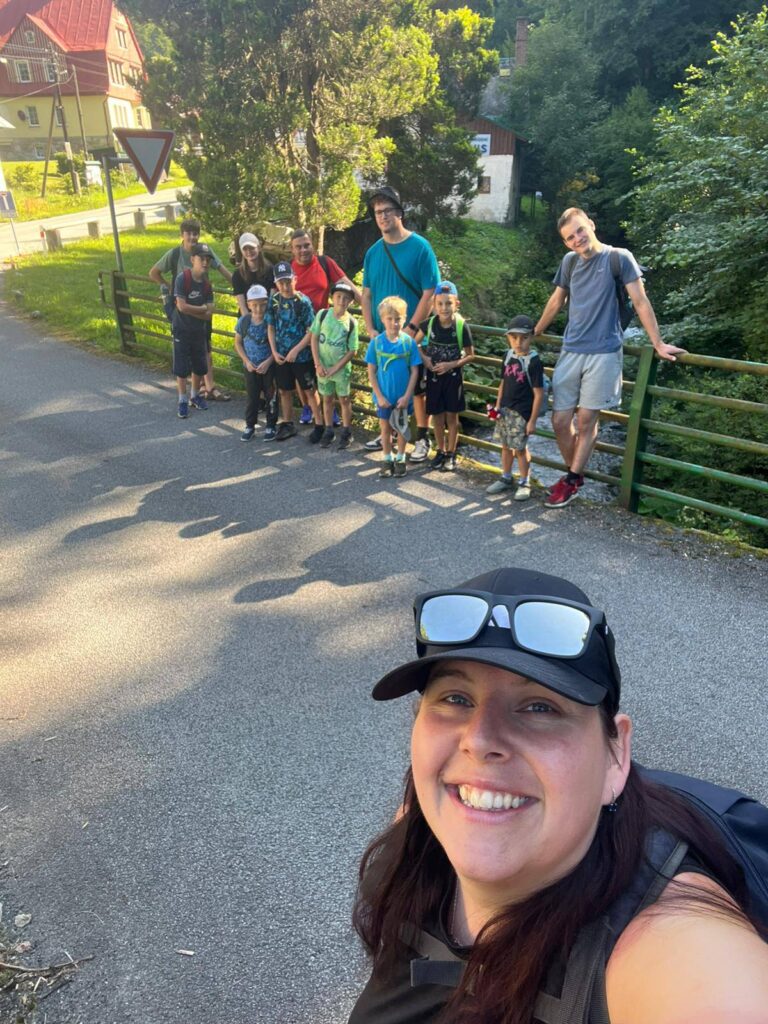 Po obědě už jsme se vydali na stopovačku, 5km pochod plný šipek a úkolů ,kde hlavním tématem byly “KONĚ” , protože cílem nám dnes byla Farma Hucul a domluvené projížďky na Po vyjížďkách jsme se pak už všichni společně vydali zpět 6km na penzion a hlavně na zaslouženou večeři