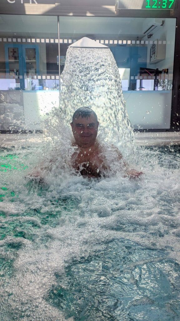Před 12.hod. se už potkáváme u bazénu a jdeme na to