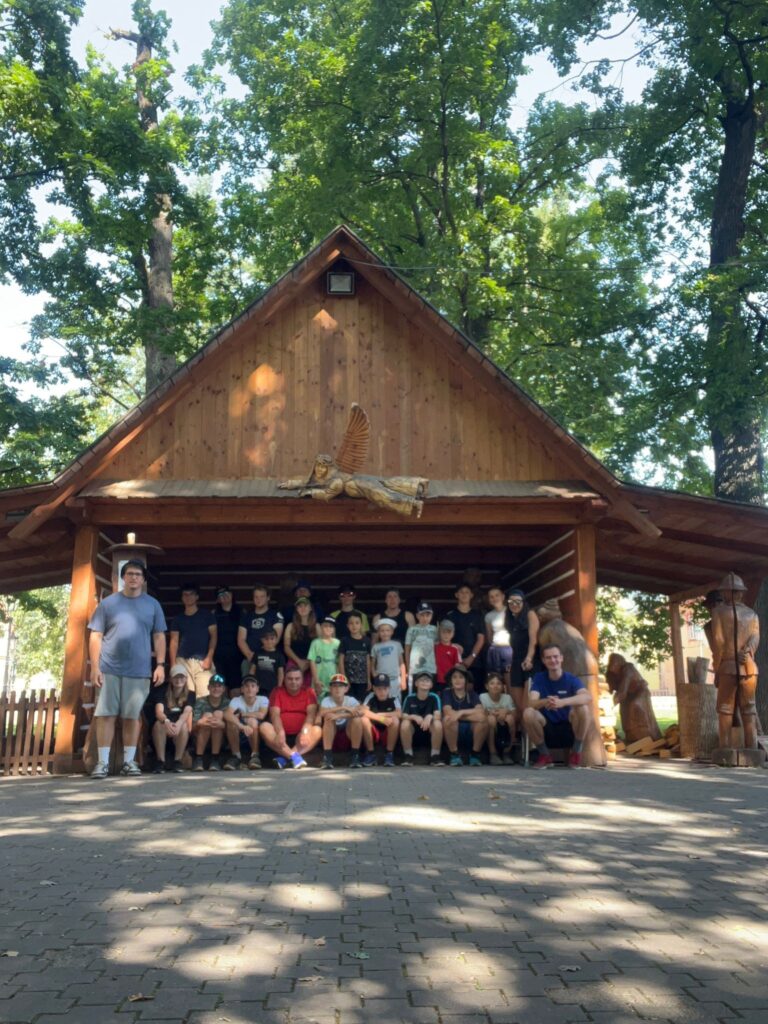 Po prohlídce jsme si dali svačinku a odpočinek v nedalekém parku a pak jeli autobusem zpět na Benecko. Do večeře stihli ještě mladší vypilovat střelbu, starší vědomosti a dorost už šel pomáhat a přípravou trať.