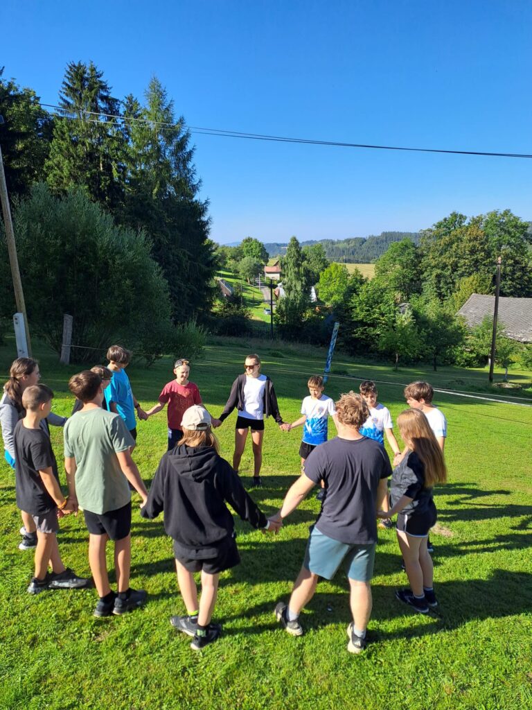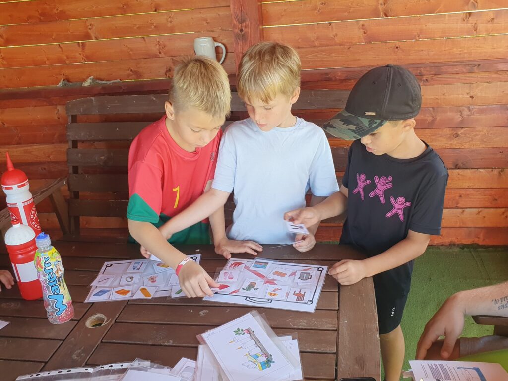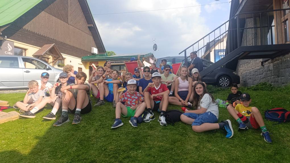 Dvě hodinky řádění si všichni skvěle užijí a taky nás to řádně vyčerpá ale ještě nás čeká společná svačinka a cesta zpět. Mladší ještě stihnou odpočinek než vyrazí na autobus, starší zase nastartují pěškobus a vyráží zpátky… Cestu si zkrátíme písničkami, povídáním a občerstvením a dorazíme společně s mladšími těsně na večeři Protože ještě nejsme úplně vybití,tak i večerní program obsahuje běhání… mladší si zahrají hry a starší běhají logickou hru po stanovištích. Teď už ale dobrou noc a těšíme se na zítřek